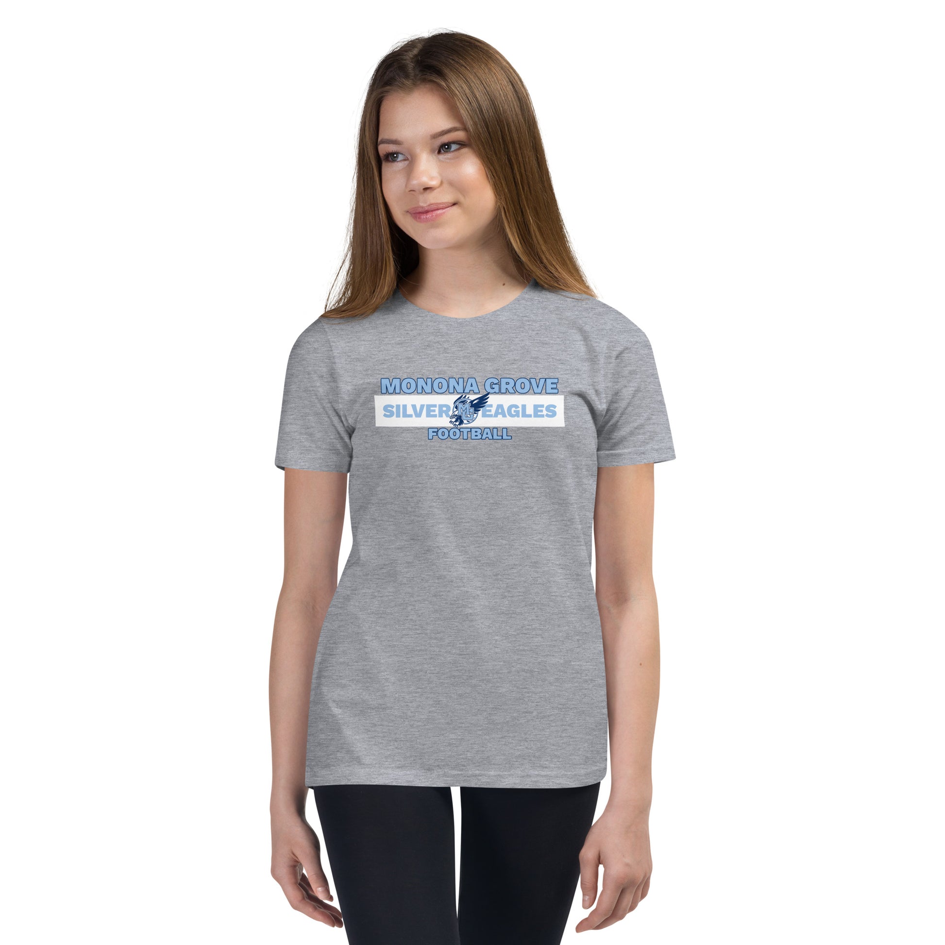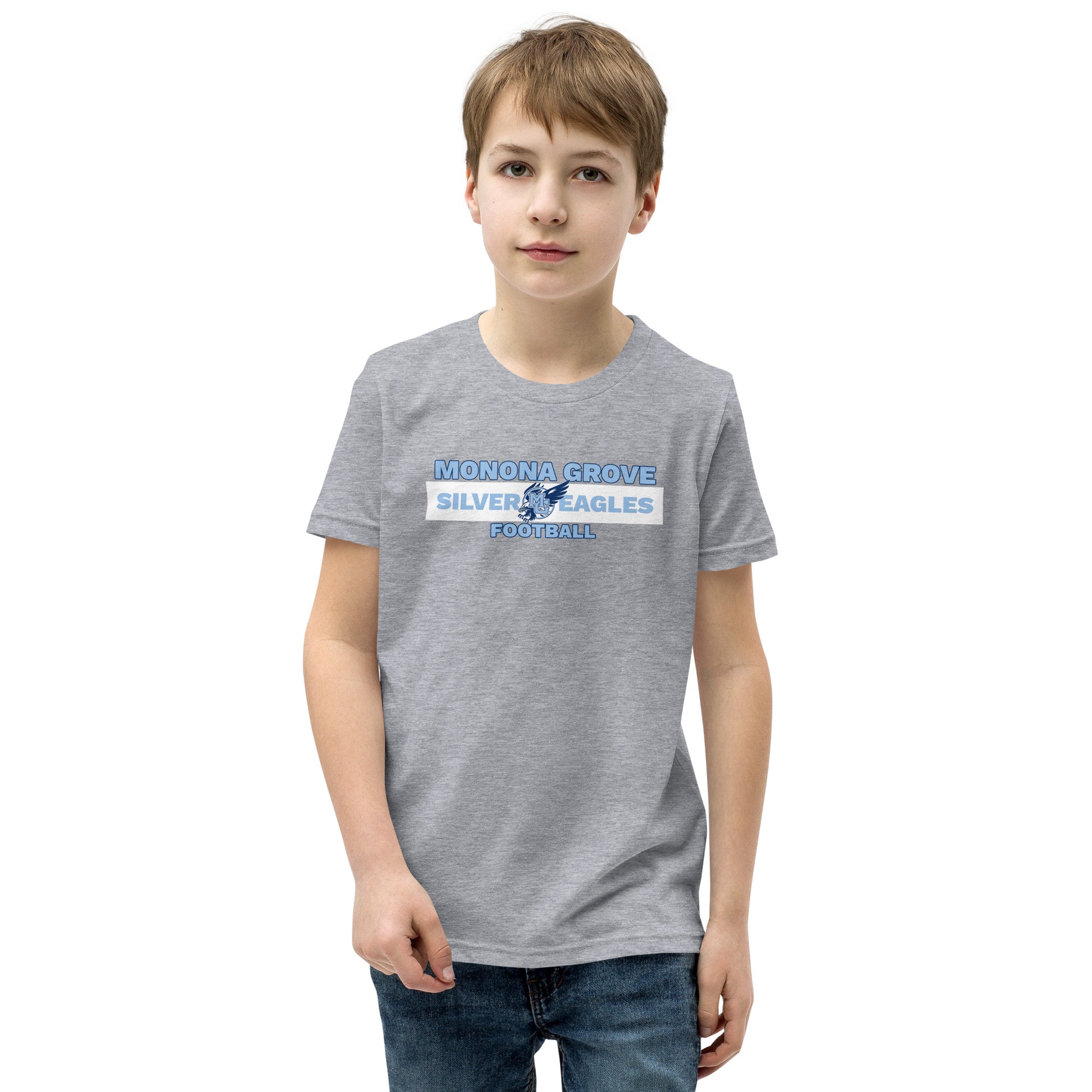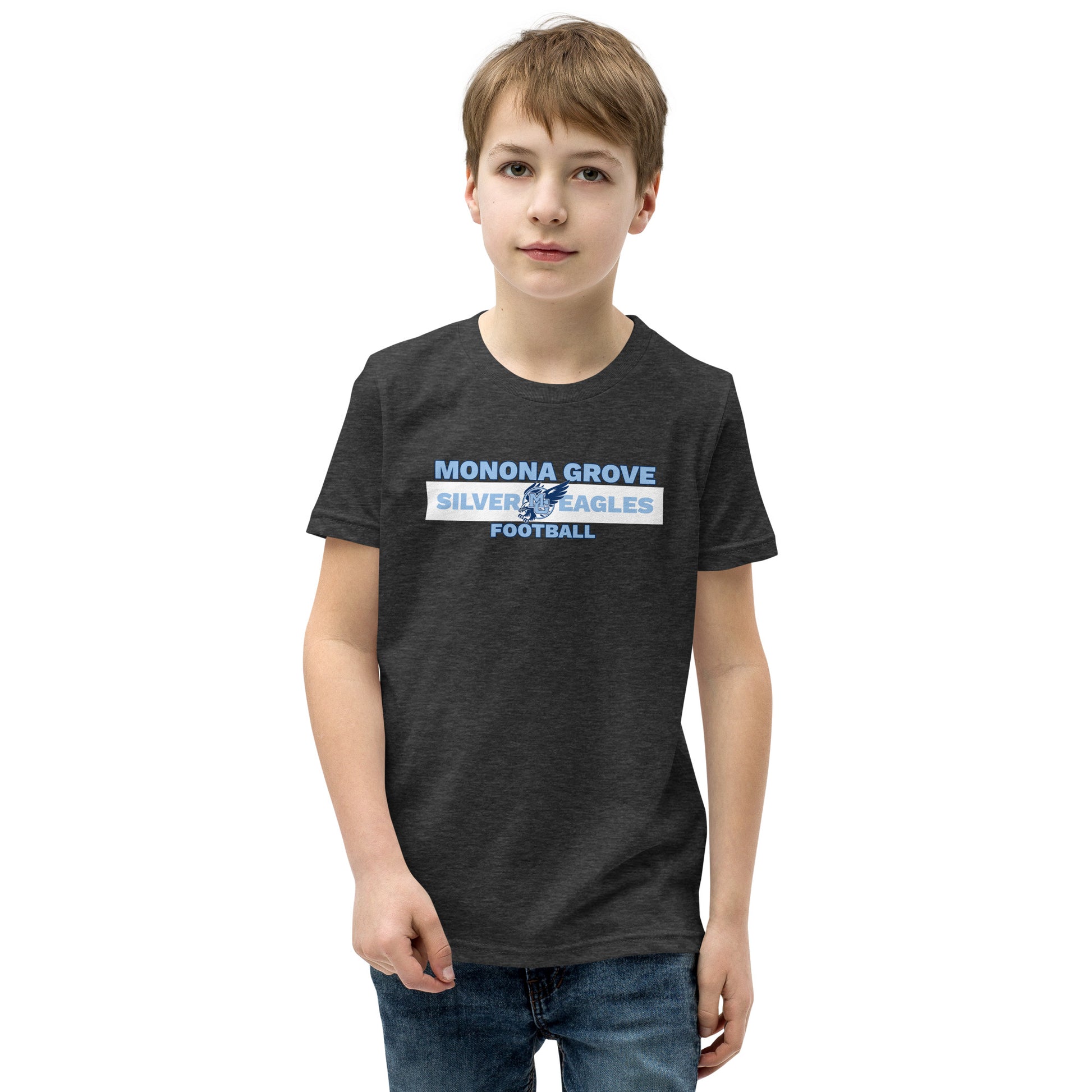 Monona Grove Football youth t-shirt you've been looking for, and it's bound to become a favorite in any youngster's wardrobe. Go Silver Eagles!